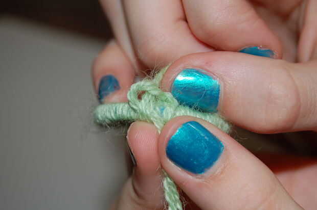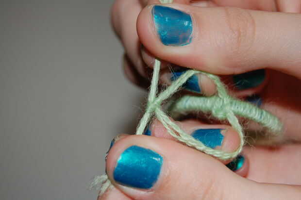 Atar el extremo de la cadena a la cadena primera final, en la base, y luego atarlos entre sí, formando un bucle.