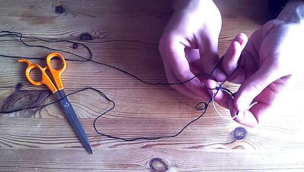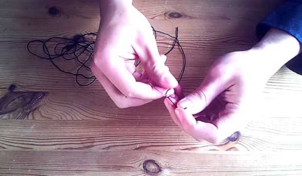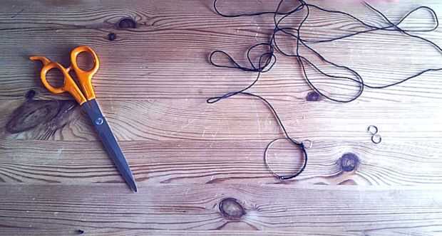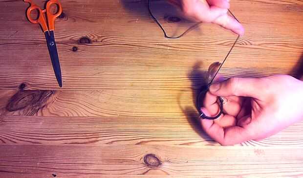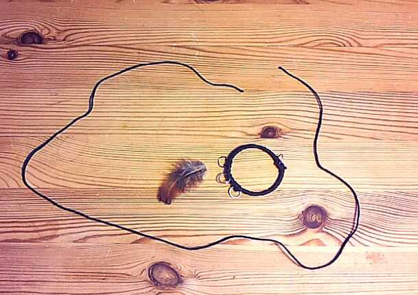 Inicio de corte de un pedazo largo de cuerda. Ya entonces crees que a menudo es necesario! Fui a dos vueltas alrededor del anillo base con la cadena en esta instrucción...