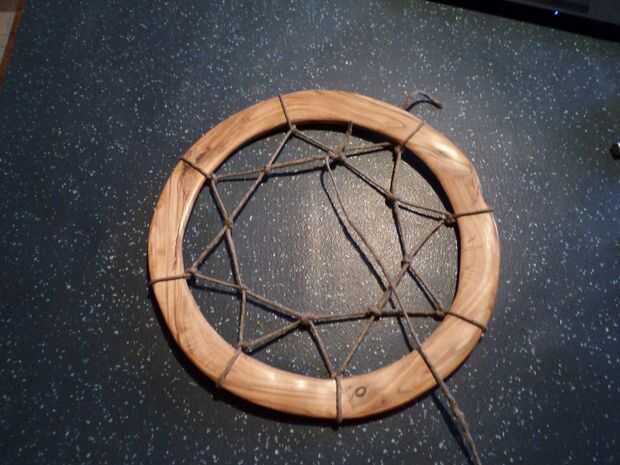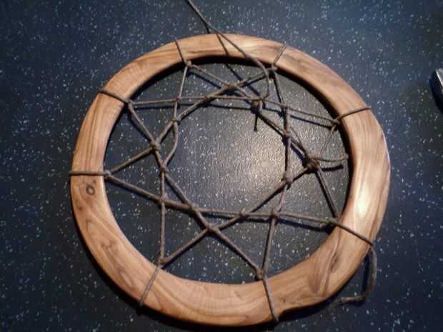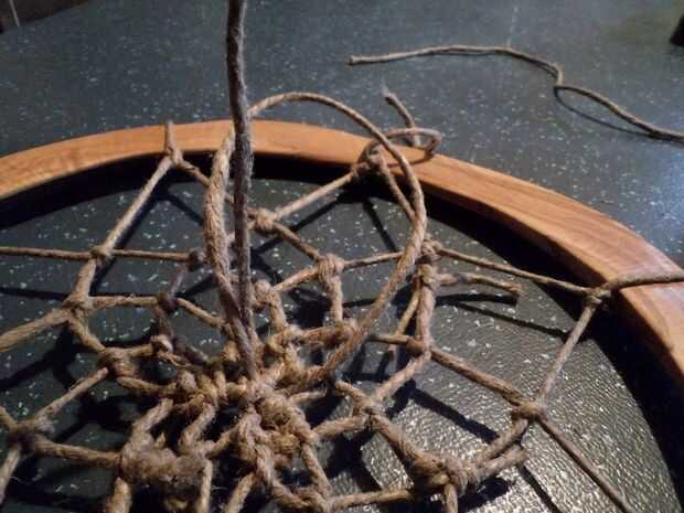 Elegí la forma de loto - no más que una serie de lazos - y utilicé cable de cáñamo natural.
