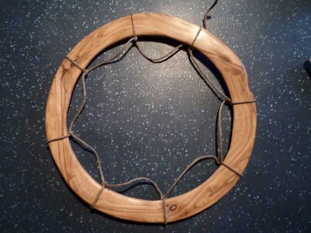 Comenzar a fijar la primera serie de bucles para el aro. Dejé un espacio de la mano entre cada lazo. Los lazos de la más flojo, va a ser más anchos los pétalos.