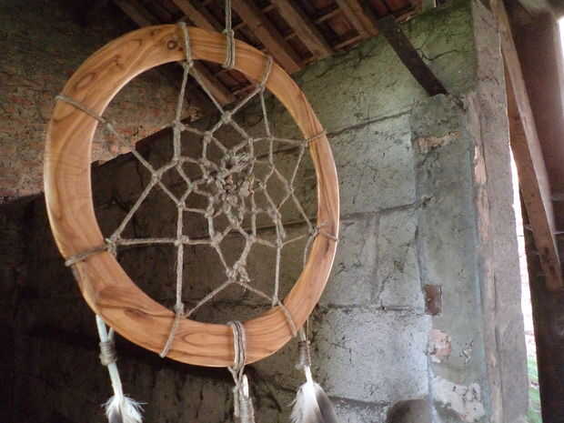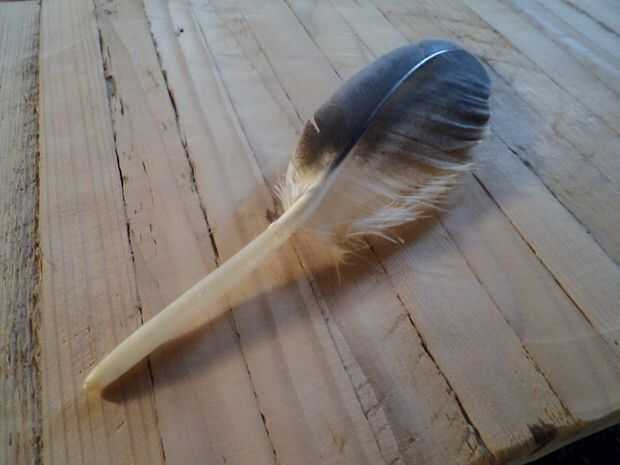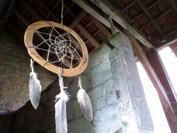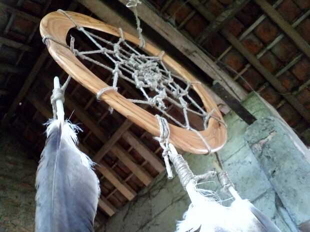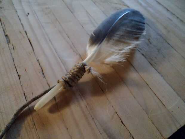 Lo que sea. Elegir la manera minimalista: sólo unas plumas (de buitres, encontrados en las montañas), fija con pescador nots.