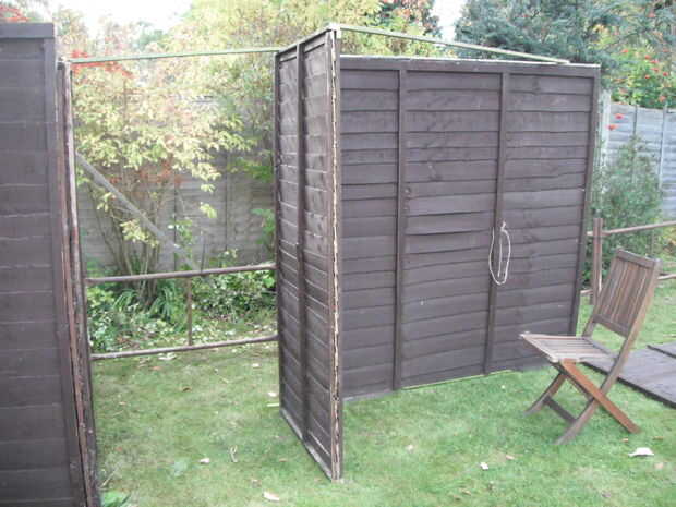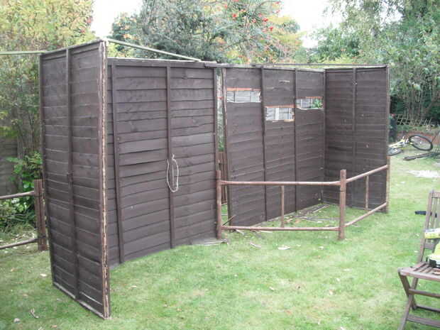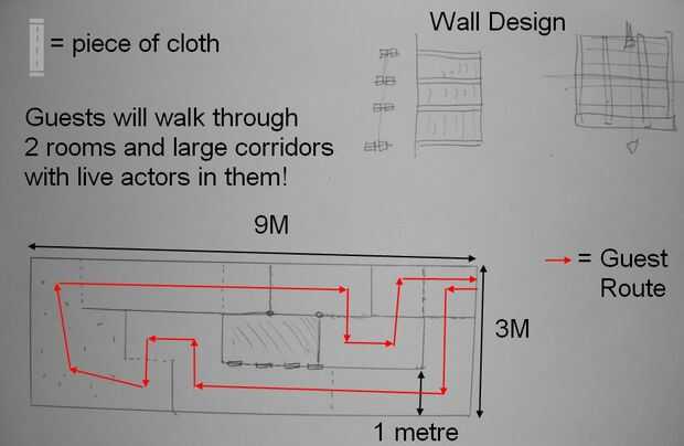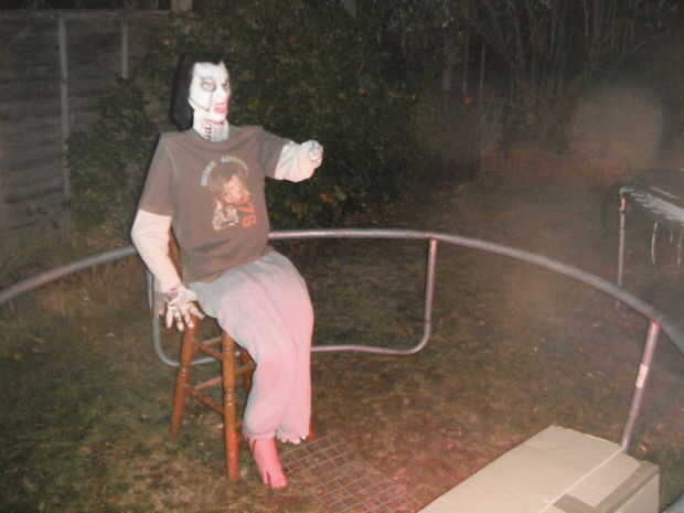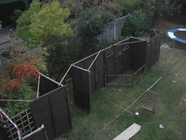 Because I used fence panels putting it together was like a ready made pack. Pero tuve que ampliar a 2 metros altura que era difícil que entonces hice un marco para poner lonas sobre por lo que podría ser como es realmente en el interior excepto la parte exterior. Después de eso he añadido la electricidad (luces humo sonido) Musnt olvidar un pequeño apoyo en el jardín de forma que todos sepan acerca del laberinto! Para esto utilicé un fram de trampolín con un dummie y silla.