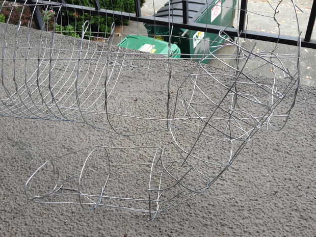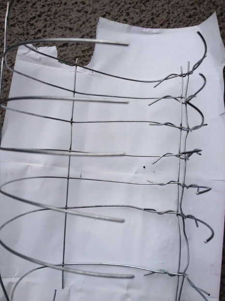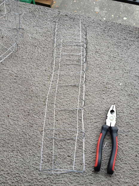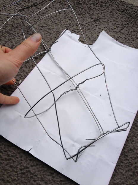 -Moldear el alambre en un extremo por lo que disminuye. Se trata de los pies. De la curva (y cortar si es necesario) el alambre alrededor de la mitad del camino hasta el cilindro para crear el empalme de la pierna.