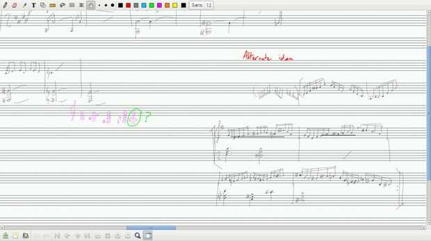 He afinando el código fuente de Xournal para que da la opción de mostrar las líneas del pentagrama en blanco en la página. No estoy listo para soltar el archivo pero te permite hacer lo mismo, pero usted puede hacer prácticamente lo mismo que una diferente manera. Debajo de uno de los menús allí es una opción para configurar una imagen de fondo. Si haces un archivo de imagen con las líneas del pentagrama, puede establecer como fondo de esta manera y empezar a esbozar sus piezas!
