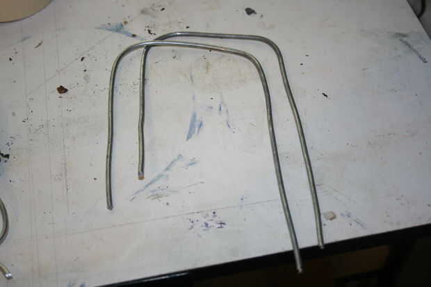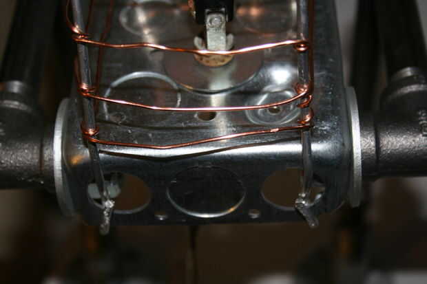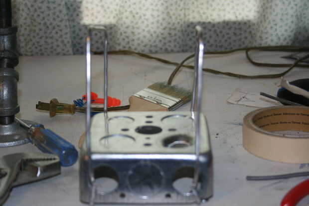 Tome la caja de 4 pulg x 4 pulg. cuadrada Raco y perfore los orificios de la parte delantera y 2 frente, parte posterior. Tomar el alambre de aluminio de 1/8 cortado a la mitad y doblar en la forma del lado de contorno de un ATST walker de pollo aka. Inserte el largo