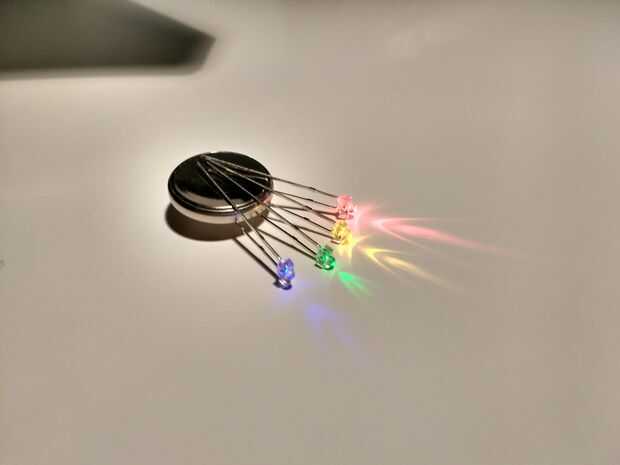 • 12 * leds (3 rojos, 3 amarillo, 3 verdes y 3 azules unos)
