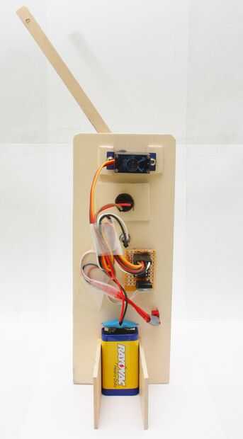 ATA para arriba los cables sueltos y fijado el circuito y la batería de 9v con la ayuda de cinta de doble cara.