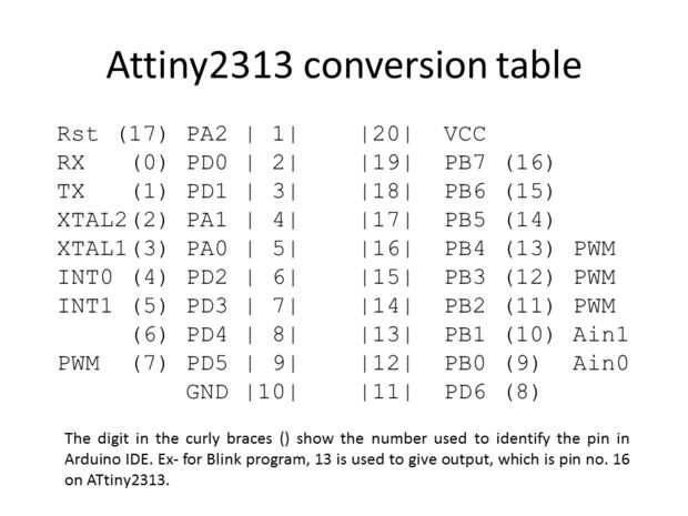 Arduino puede usarse para el desarrollo del ATtiny2313 limitada a algunas funciones:
