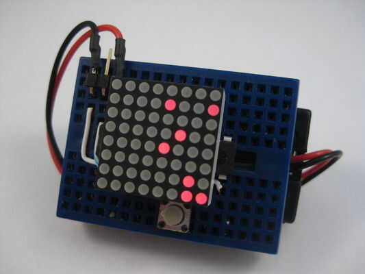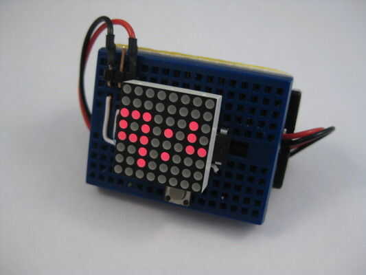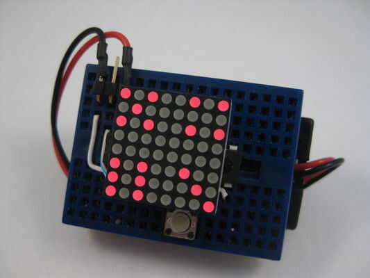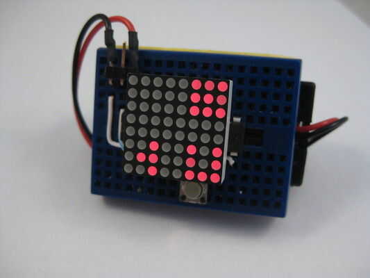 modo binario (bcd, véase imagen 4), los dígitos de hora, minutos y segundos son Mostrar como punto binario en distintas filas en la matriz de led. las filas 0 y 1 (de arriba) representa los dígitos de la hora, aparece cubierto filas 2, fila 3 y 4 representan los dígitos de minutos, aparece cubierto fila 5, fila 6 y 7 representa los dígitos de los segundos.
