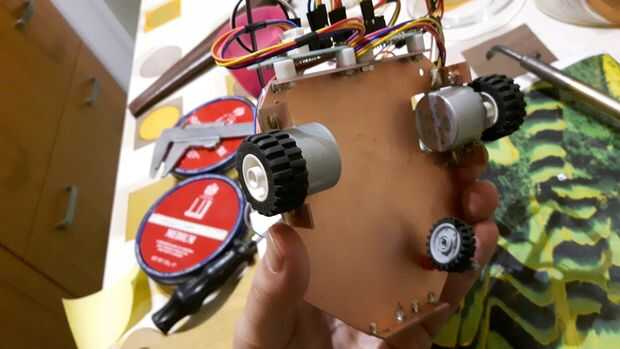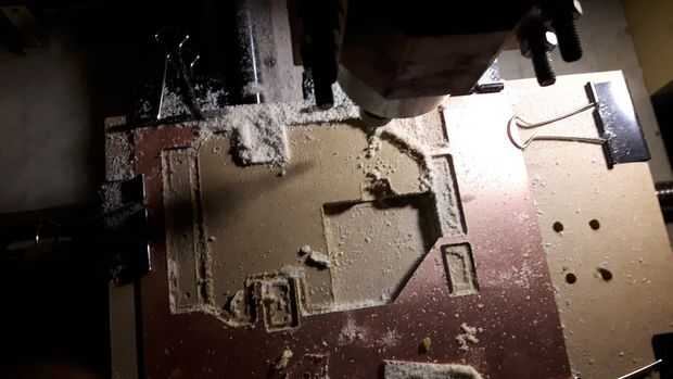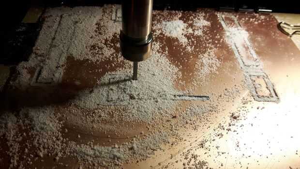 El robot del sistema fue hecho en el PCB. El contorno de la placa, cortar en mi máquina cnc casero (DIY). Para la energía, puede utilizar baterías o alimentación externa. Por lo tanto. que el robot debe ser inalámbrica que utiliza una batería recargable que se colocan en la plataforma inferior del robot.