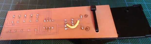 Perforé dos agujeros de manera que podría tender un puente (el cable amarillo en la foto) del cable negativo de la batería en la ubicación correcta en el circuito y soldar el puente en su lugar.