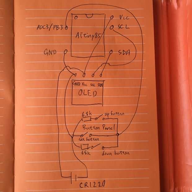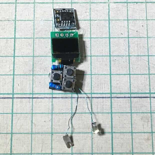 Desde el reloj de anillo tienen una superficie curva, no puede soldar todos los componentes en una sola tarjeta de PC. MCU, OLED, botón panel y batería titular todos conectado por el alambre revestido de cobre. VCC y GND revestido de cobre del alambre debe alrededor de 6-8 cm y requieren quitar la capa en el punto medio conecte por papel de lija. Otros cables son un poco más cortos.