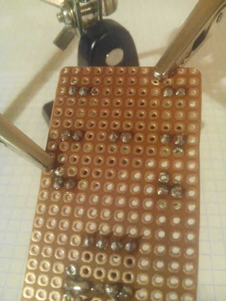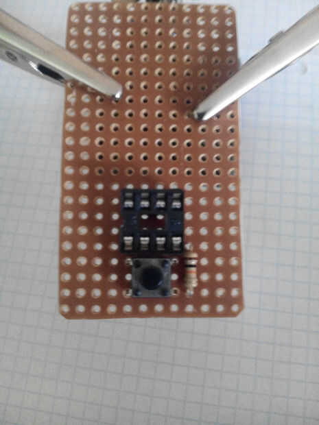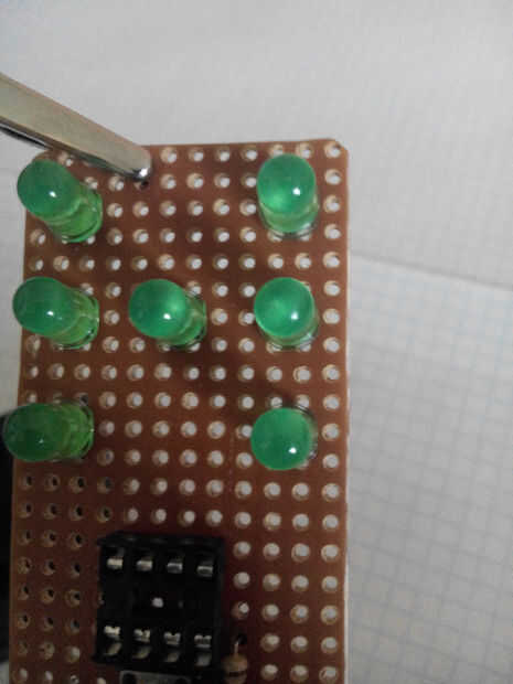Material, s para mini led dadosHerramientas1 soldador2 alambre de soldadura3 cortador del tablero veroPiezas que necesita1. 8 pines toma ic2. 7 led, s3. pic12f629a4. 10 k ohmios (1)5. altavoz6. batería de lipo 3,7 voltios7. vero board8. los cables9.