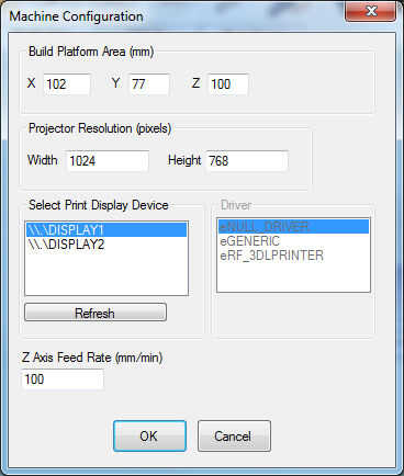 - Establecer la Zona de construcción de la plataforma X96 Y60 y Z250 (Z500 si tienes una máquina XL)
