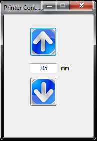 - Haga clic en los controles de la impresora vista para abrir el cuadro de diálogo controles de impresora y tomar el control sobre el movimiento del eje z. Puede cambiar el número en el centro de los botones para cambiar los incrementos del movimiento. Se recomienda un valor máximo. 1mm en esta etapa ya que la impresora no de calibrado todavía. Lo haremos en los próximos pasos.