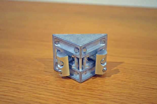 Montar las esquinas, poner un M8 perno a través de cada una de las ranuras de la esquina de cabeza de queso y atornillar un tornillo M8. Un par de vueltas hará el truco. Ahora deslice ambas esquinas del perfil largo 370mm. Inserte este conjunto en dos canales.