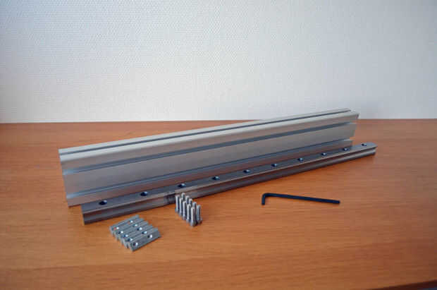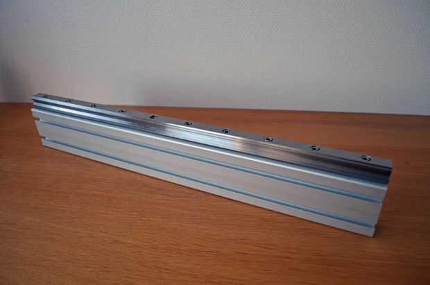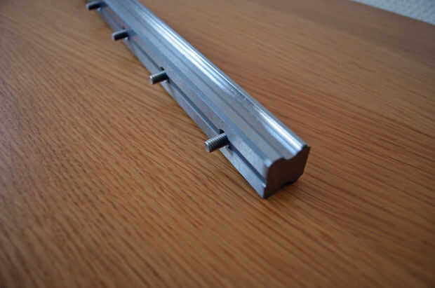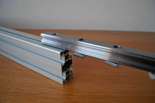 - Coloque a la guía lineal sobre la viga de aluminio con las tuercas en T insertadas.