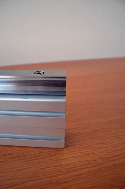 Empezar por el linear de la guía de montaje en aluminio Z-beam. Usted puede reconocer que la Z-beam en los extremos de las vigas ya que tienen tiene 4 hilos M6 en cada extremo de la viga.