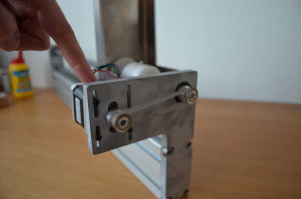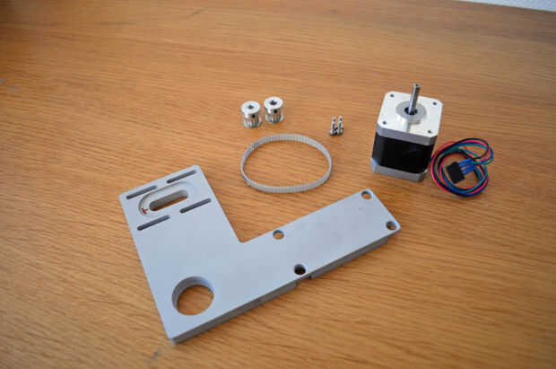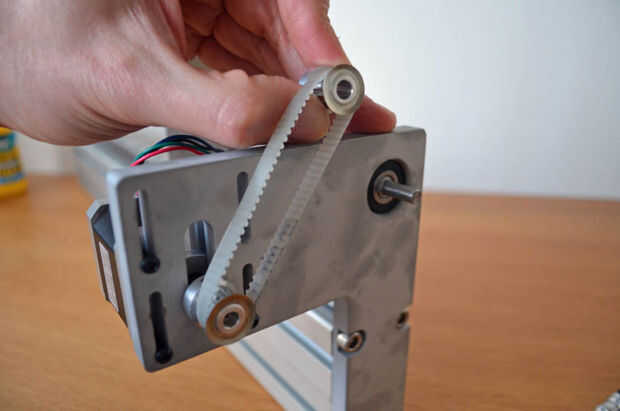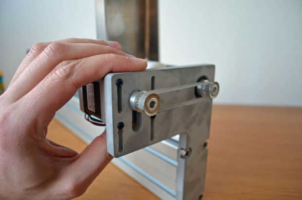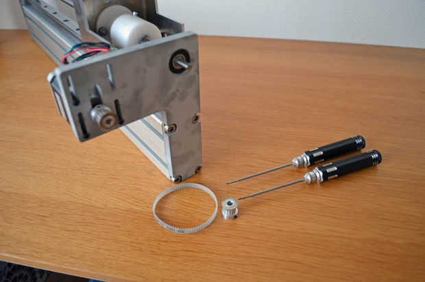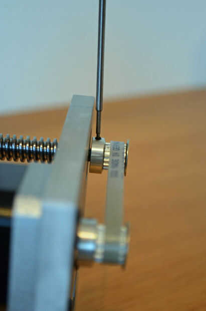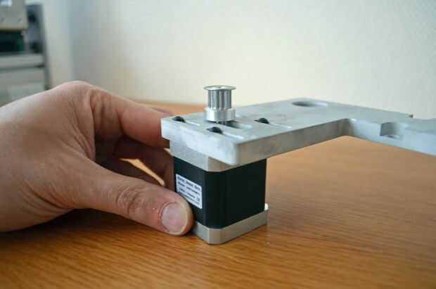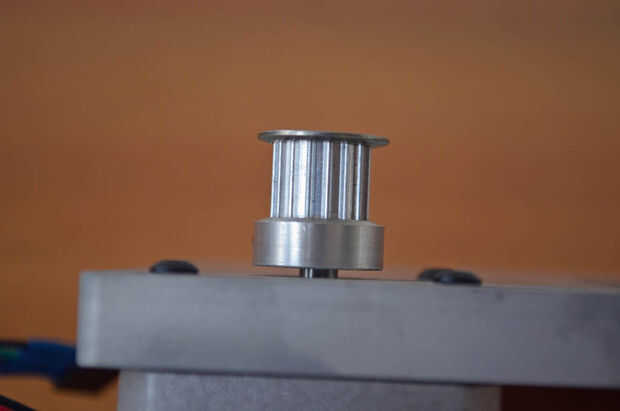 Su eje y el motor paso a paso tienen una cara plana. Esto es donde el tornillo de las poleas se celebrará sobre el eje.