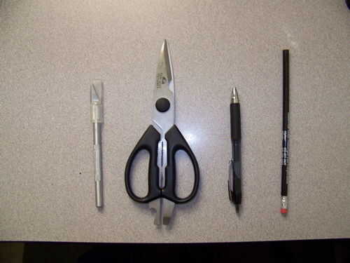 tijeras o un cuchillo del exacto (lo que usted está cómodo con)