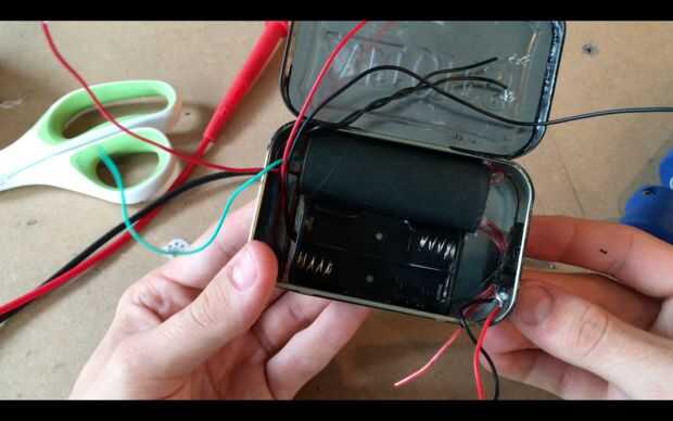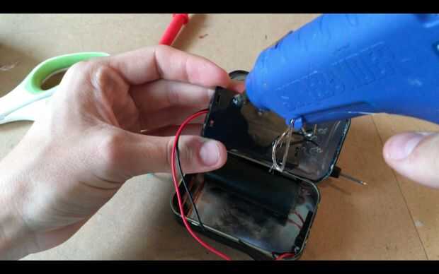 Tomemos el caso de la batería AA y aplica pegamento caliente a la parte posterior de la misma.
