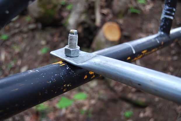 Para evitar que el braguero Baila electro en o crea un acoplamiento de 3/4" conduit EMT. Cualquier tubería metálica o barra podría utilizarse para esto. La armadura tenía 1/2" rosca vigas soldadas con autógena en la parte inferior de cada soporte de que éstos se unen a. Corte tres piezas de conducto a 3'4 "y un martillo 2" de cada extremo plano. Asegúrese de que ambos lados paralelos. Perfore un orificio de 1/2" a 1" en de un lado. Medir 3' desde el centro del agujero y marque el otro lado. Taladro un agujero correspondiente de 1/2" de ese lado. Ahora debe tener un vínculo con los agujeros exactamente 3' aparte.