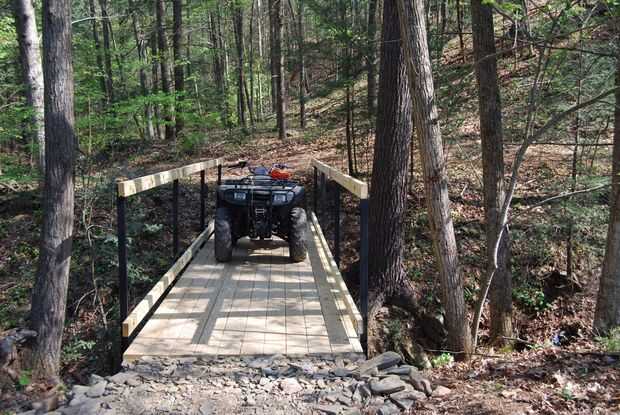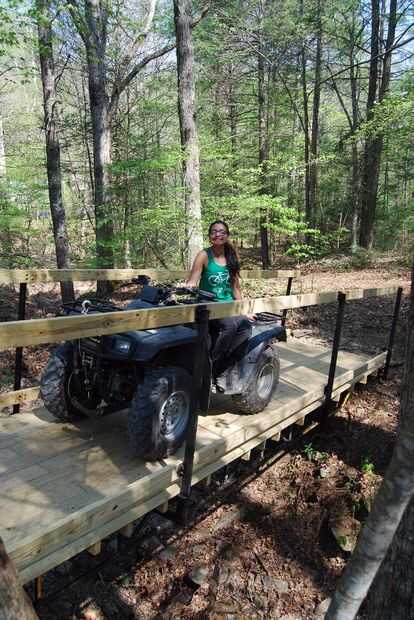 Un detalle de izquierda está construyendo un enfoque (aka una rampa conduce a un puente). Apilar hasta grandes rocas y cubrir con grava. Evitar el uso de tierra o suelo se retienen humedad y puede pudrir la madera más rápida. La grava permite toda el agua drene. Es probable que si usted está construyendo un puente tienes acceso a un montón de rocas. Si así lo desean el acercamiento podría hacerse de hormigón o madera.