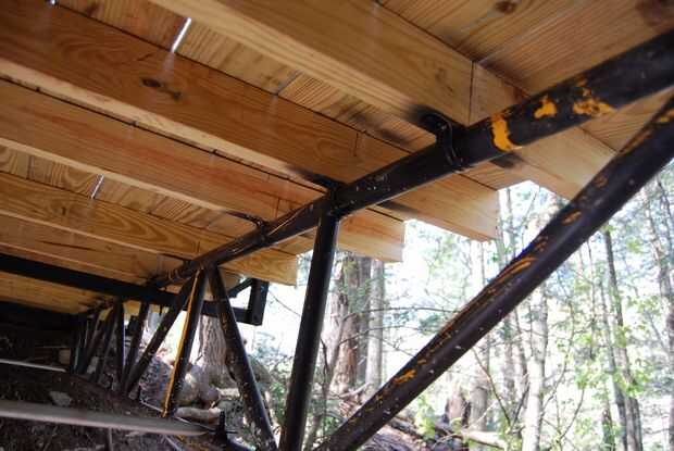 Asegúrese de pintar todas las superficies de metal expuestas. Las abrazaderas de conducto utilizadas debajo de la cubierta están cubiertas, pero sólo para estar seguro fueron pintados así. Algunas de la pintura en los andamios habían llevado así que esto fue retocado así.