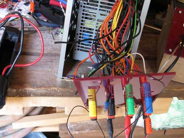Inserte los terminales en los orificios, a partir de una fila de los negros en la parte inferior, luego (para una más vieja fuente de alimentación) una fila de los rojos encima de estos. Estos serán los terminales 0v y 5v.