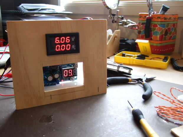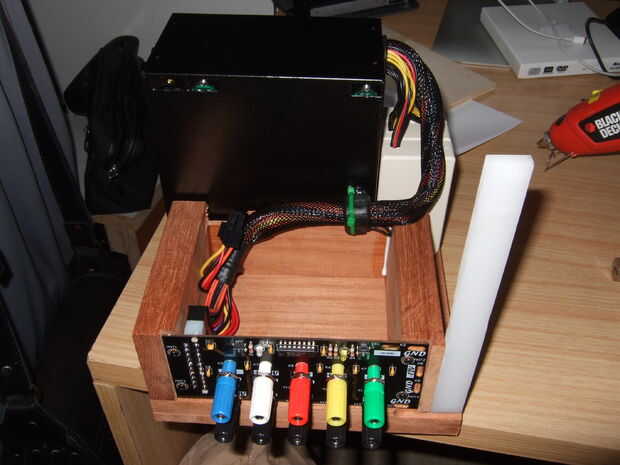 Básicamente todo que hizo fue construir una caja para la fuente de alimentación. Utilizando sí puedes adivinar. MADERA. Y algunos de PVC acrílico.