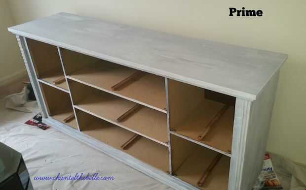 Usé mi cepillo Wooster atajo 2 pulgadas ángulo para aplicar la imprimación en los bordes y pequeños rincones y grietas. Después de cebar la moldura y bordes del buffet solía un pequeño rodillo aplique una imprimación para todo. Apliqué dos capas de imprimación a los cajones, puertas y buffet. El tiempo de secado para mi primer Kilz es de 2 horas. Ya era tarde así que dejé mi primer secar completamente durante la noche.