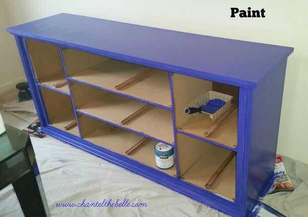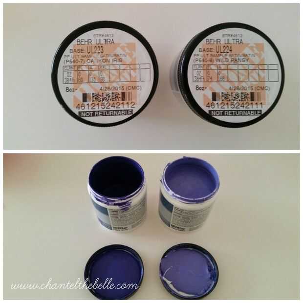 La diversión parte! ¡ Yay! Tuve un tiempo difícil decidir de qué color se vería mejor en mi apartamento. Mi casa actualmente está decorada con el pavo real como inspiración (azules, dorados y verdes). Decidí un rico púrpura sería una buena manera de romper mi esquema de color. Decidir cual cortina de púrpura era aún más difícil. Sorprendentemente, he podido pintar el entero bufet cajones y puertas con sólo una muestra de 8 onzas de Behr Premium Plus Ultra en un final del satén! Inicialmente compré dos muestras en Iris de cañón y.. .pero decidió un cuarto de cañón Iris era el ganador.