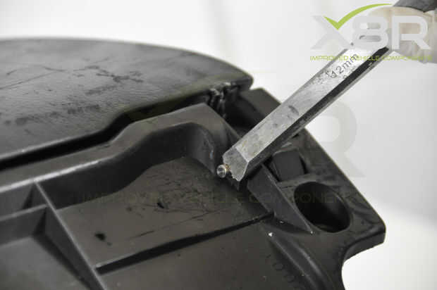 Para la eliminación de los viejos pernos, utilice un destornillador de cabeza plana o un cincel, golpeando con cuidado los pasadores de sus órbitas como se muestra en las fotos.