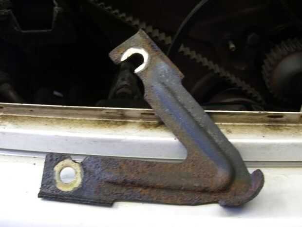 Paso 2: Retire el soporte frontal. Serán cuatro pernos de 10mm en los bordes del outter (2 en cada lado) y tres pernos de 8mm entre ellos y dos tornillos en la parte inferior. Ahora antes de simplemente intentar tire que pedazo hacia fuera, mira el cable de desbloqueo del capó que se extiende a través de él, hay tres clips negros que hay. Para quitar de los clips, coloque los dedos en el cable, empuje hacia arriba de la pinza, luego empuje hacia la parte delantera del coche.