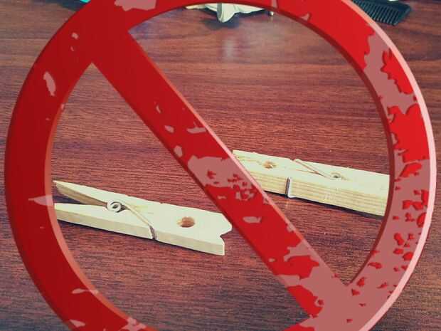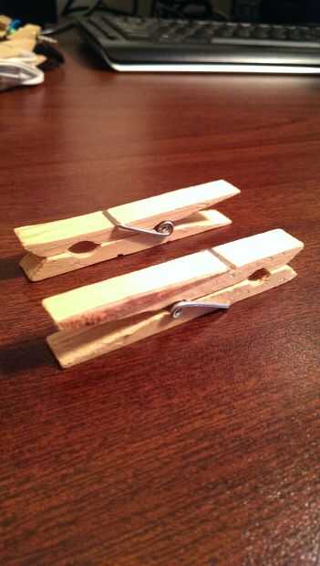 Tomar dos alfileres de la ropa y coloca cara de lado a lado, vertical direcciones opuestas.