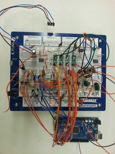 El diagrama de bloques anterior describe cómo funciona la prótesis de oído. Una señal recogida por el micrófono primero pasa por una etapa de preamplificación que seleccionan las frecuencias por encima de 3 kHz (fuera del espectro de la audiencia) y luego amplifica la señal restante para futuras etapas. La señal entonces progresa a la etapa de filtro donde pasa a través de cuatro filtros paralelos que dividen la señal en cuatro rangos de frecuencia. Esta señal filtrada es leída por el estimador de nivel y proporcionada a la Arduino. La señal filtrada se pasa también al control de ganancia de escenario donde se amplifican las señales basado en tuning configuración proporcionada por el Arduino. La señal entra finalmente en la etapa de salida donde pasa a través de un verano y la señal modificada se puede escuchar con un par de auriculares.