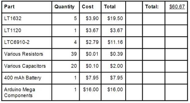 Este proyecto requiere unos $60 pena de piezas. Ver tabla de costo arriba. Por favor consulte la lista de piezas para una lista completa.