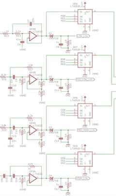 Las especificaciones de filtro en el esquema superior se recomiendan la operación. Si desea cambiar las bandas para sus propias necesidades, valores de los componentes tendrá que ser cambiado. Si no está familiarizado con la topología de la Sallen-Key, por favor lea esta como que lo guiará a través del cálculo. Si desea cambiar los filtros de paso de banda, esta es una útil herramienta que le guiará a través del proceso. Tenga en cuenta que el factor Q de un filtro de Bessel es 1/sqrt(3). Por favor consulte este Q-factores de otros filtros recomendados.