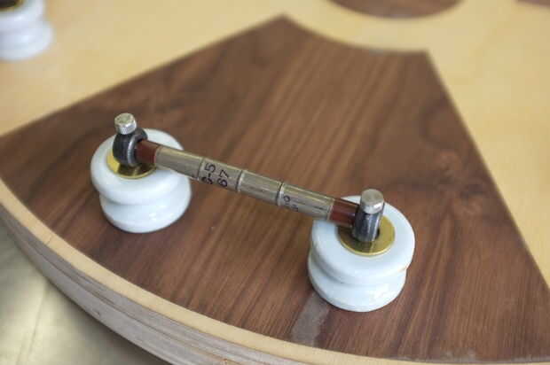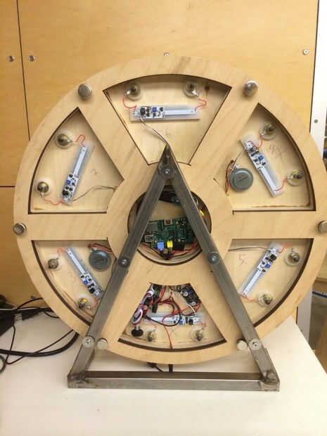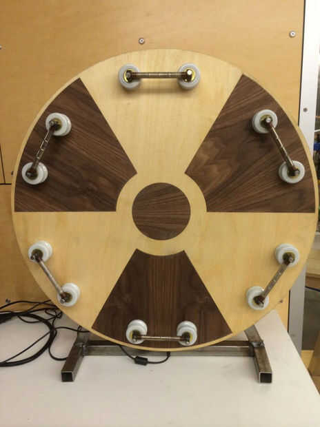 Después de hacer un soporte de exhibición, la obra fue completa y funcionado muy bien. Los sonidos windchime misterioso proveniente desde el panel frontal de la pieza y son una buena indicación de la omnipresencia de la radiación. Estos detectores individual generalmente recogerá alrededor de 20-30 las detecciones por minuto sólo de radiación de fondo, por lo que ajustar el código para atenuar esto un poco para que no timbre constantemente.