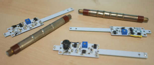 Mis tablas tenían un conector de tres clavijas para llevar alimentación y tierra a la Junta y la señal de apagado del tablero a la electrónica de control. Decidí seguir con el tubo de Geiger-Müller de SBM-20 para la estética y porque era fácil para una porción grande del excedente de ellos de Ucrania. Las tablas requieren un poco de trabajo llegar a un estado de trabajo funcional y estable. Muchas de las piezas SMD no clasificados apropiadamente para los voltajes más altos involucrados en este circuito, y el alto voltaje clasificado versiones no disponible en las huellas del paquete que he utilizado en el PCB asi tenían que ser airwired.