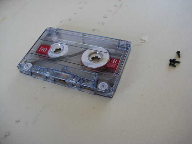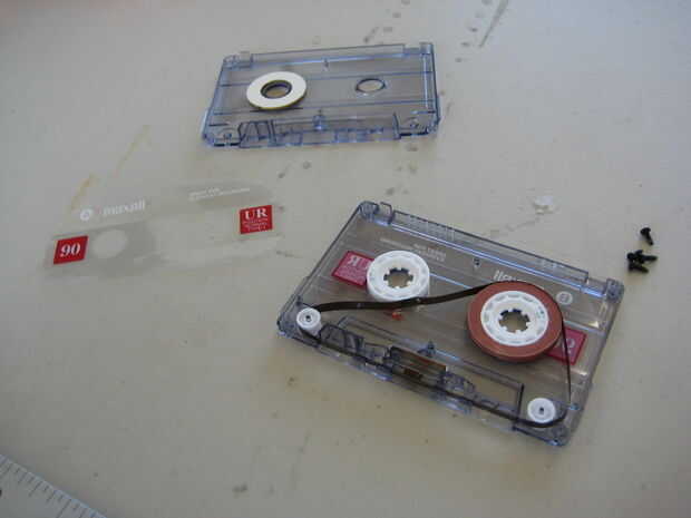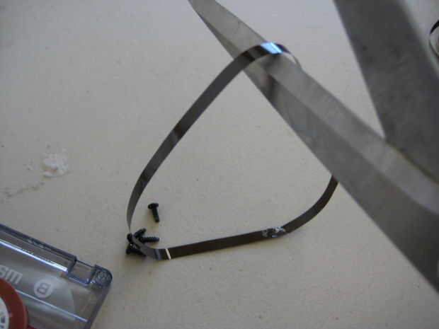 En primer lugar, reabrir el caso, quitar el lazo de cinta magnética y cortar por la mitad en cualquier lugar a lo largo de su longitud.