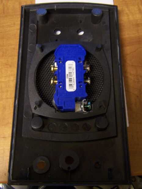 a continuación, averiguar donde vas a colocar la salida en el altavoz de la carcasa. Me pareció que el lugar donde se encuentra el orador perfecto, que requiere sólo una pequeña modificación. Usando un cuchillo (tenga cuidado), cortar los agujeros para que la salida fue en la rejilla del altavoz. Si tienes acceso a uno, una herramienta Dremel sería perfecta para este trabajo.