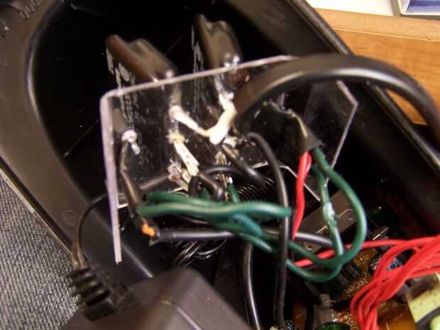 Ahora estás listo para la soldadura de sus repetidores en. Conectar el + al polo positivo del rectificador y negativas - para el rectificador. Luego suelde el cable negro del cable eléctrico con un conductor de CA en cada uno de los relés. Luego soldar dos cables cortos del otro cable de AC de los relés a cada una de las salidas, donde la pestaña se ha rota anteriormente. Envuelva todas las conexiones con cinta aislante.
