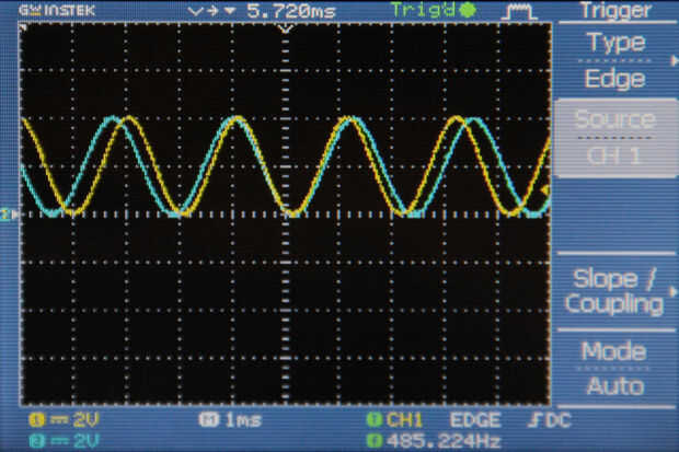 incrementando inex1 y 2 a distinta velocidad, usted puede enviar ondas sinusoidales de diferentes frecuencias (440 y 480 hz en este ejemplo) cada canal hacer el CAD.