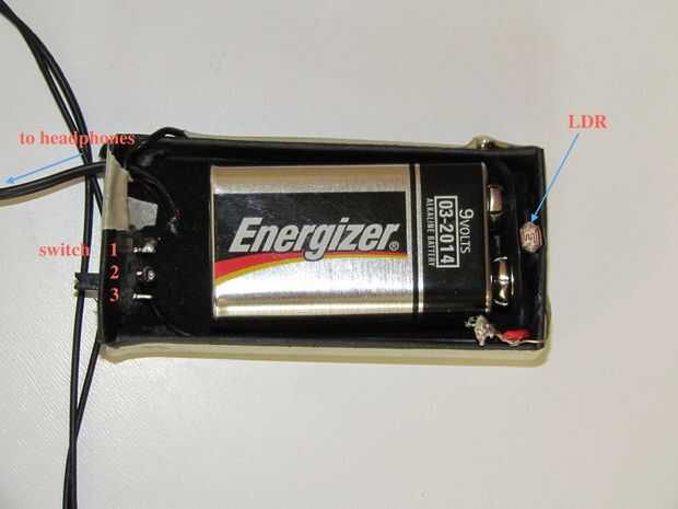 * A continuación, pasa a través de la LDR y por el otro lado a tierra de los auriculares.