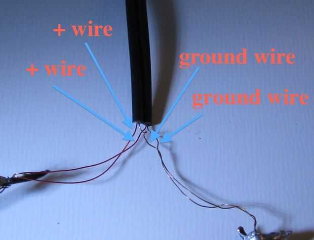 Sólo es realmente complicado es los cables de los auriculares. Como describí en Arduino Theremin óptico, puede utilizar ambos auriculares Si usted par los cables correctamente (vea foto abajo). Otra vez, todos estos cables necesitan el tratamiento ligero para quemar el aislamiento de resina.