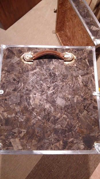 "Tesoro" en forma de Sierra de cinta estilo anillo de compromiso de la caja de Chechenia laminado y madera purpleheart. La "almohada" fue hecha de una pieza de espuma envuelta en un viejo bolso de las gafas de sol. El cuadro fue acabad