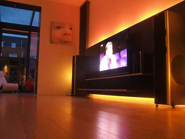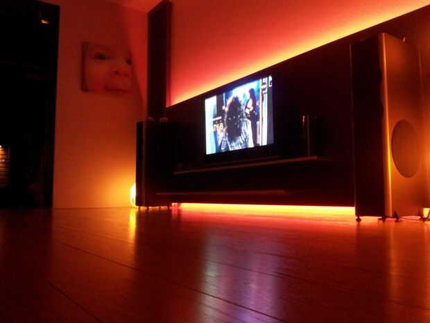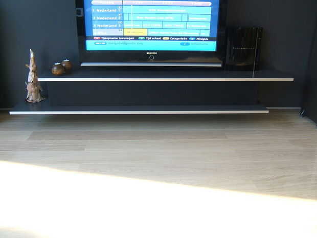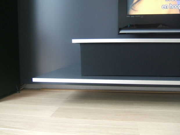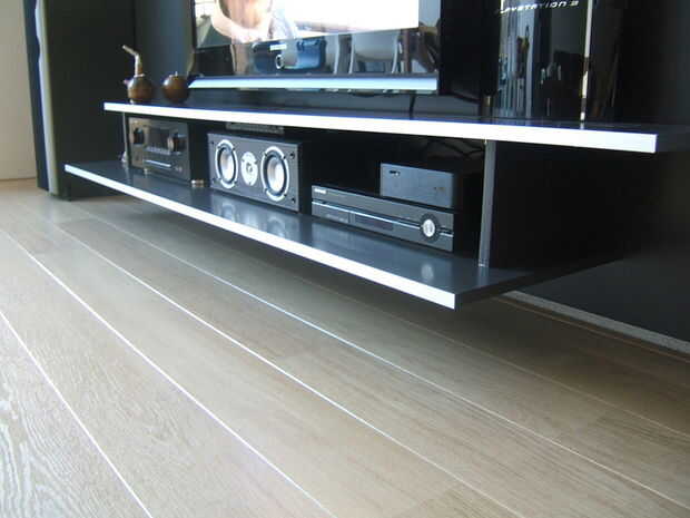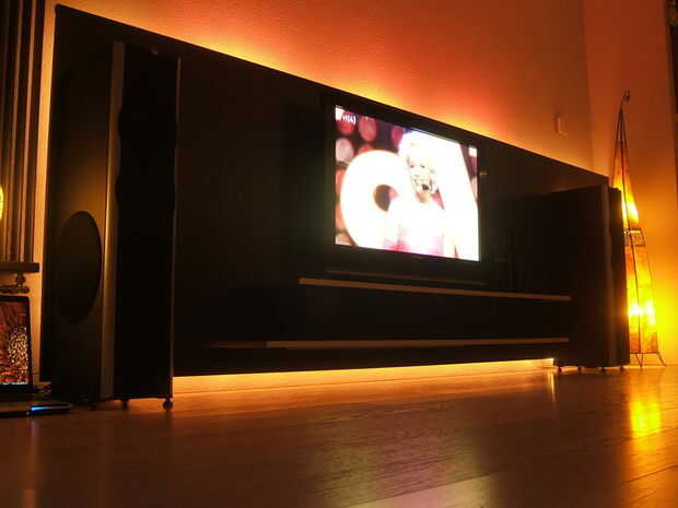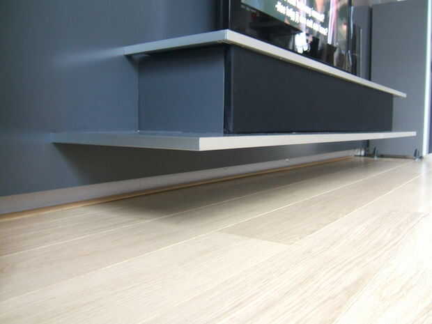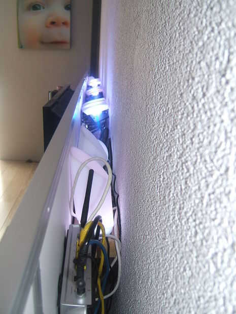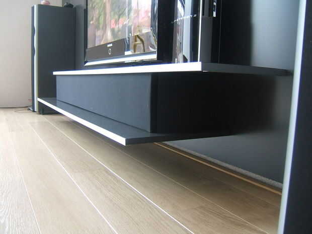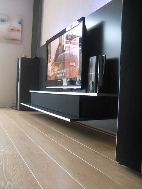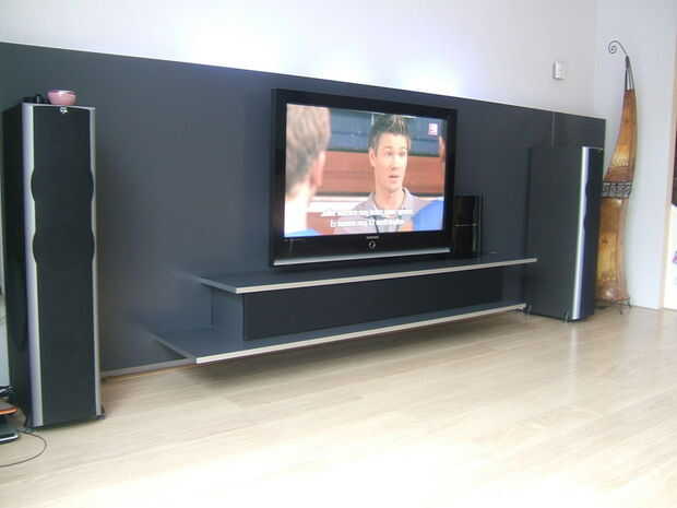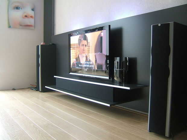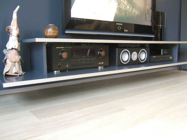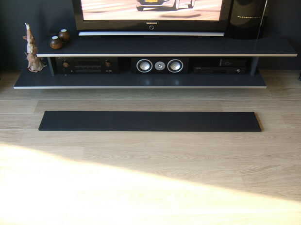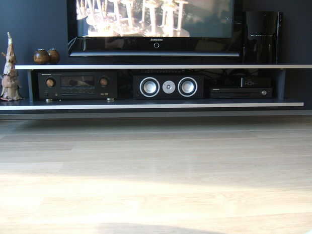era el lugar sólo bueno para la TV en la pared encima de la chimenea que tiene una forma torpe.El problema es donde voy a poner los componentes receptor, decodificador de Cable, reproductor de Blu Ray, etc..Un muelle de Audio regular obstruiría la ch