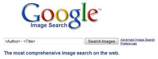 Para encontrar la portada del álbum, tire de Google (o de Yahoo!) Imágenes. Poner el nombre del autor y del libro en la barra de búsqueda, luego haga clic en "Buscar imágenes".