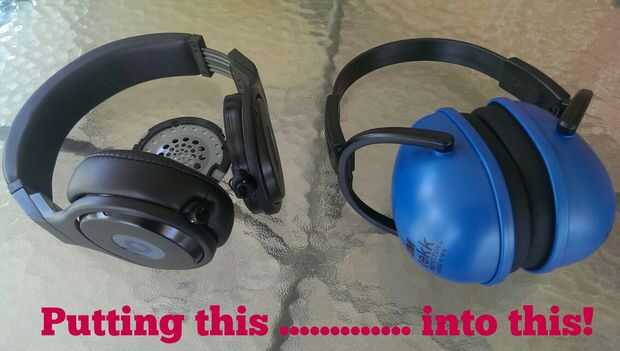 Quería aprovechar esta experiencia conmigo mediante la aplicación de Spotify en mi teléfono mientras que cortar mi césped, pero los auriculares High-End ofrecen poco en el camino de protección auditiva. Por lo tanto, mi solución fue mod un par de orejeras de protección auditiva de 3 M.